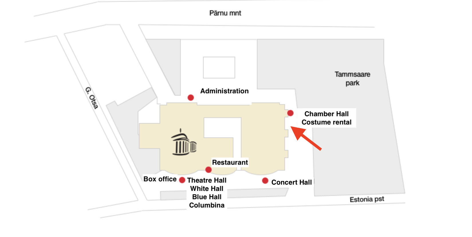 with the entrance from Tammsaare park through the costume rental and Chamber Hall door that faces Tammsaare Park. (see figure below)